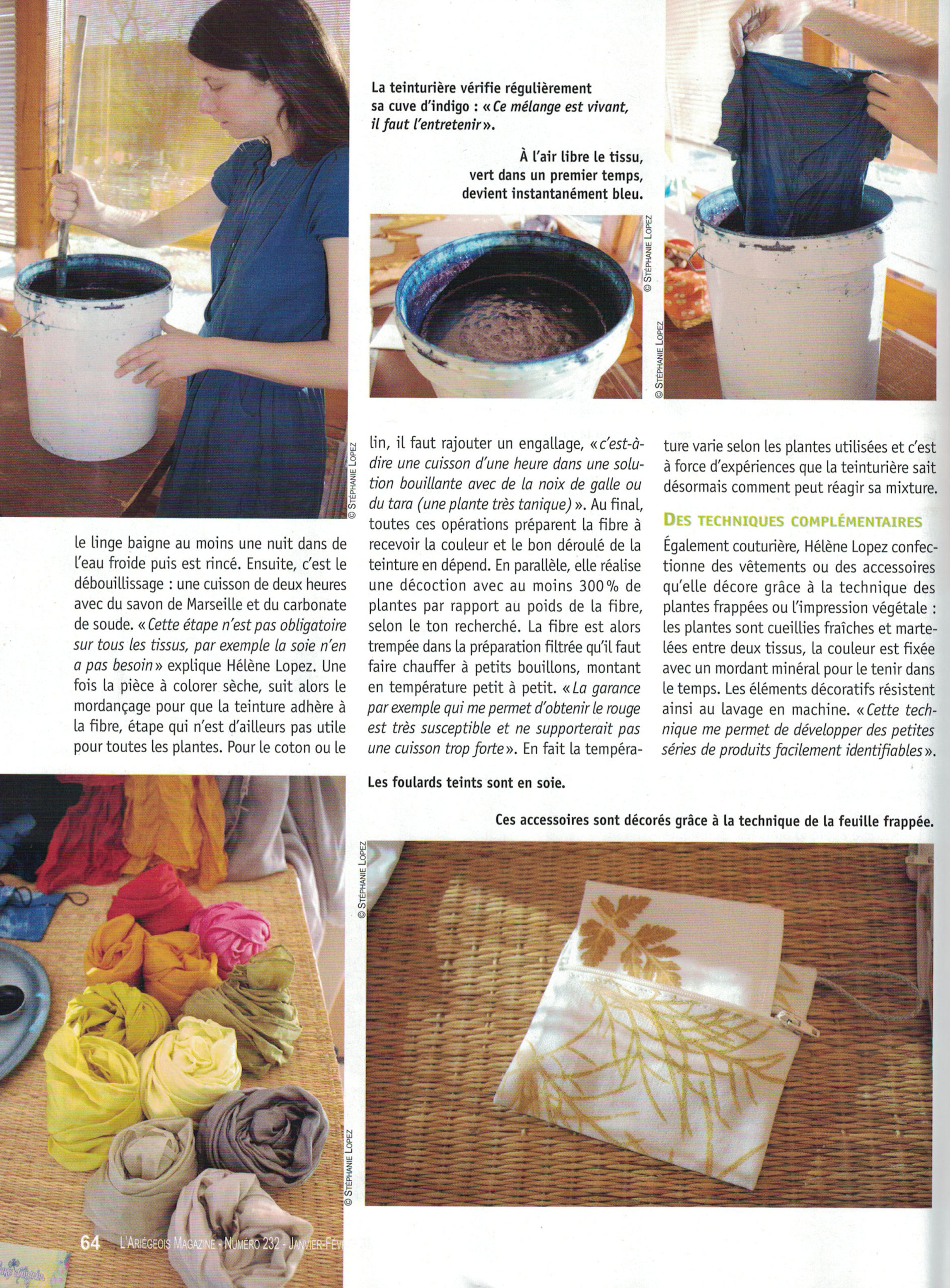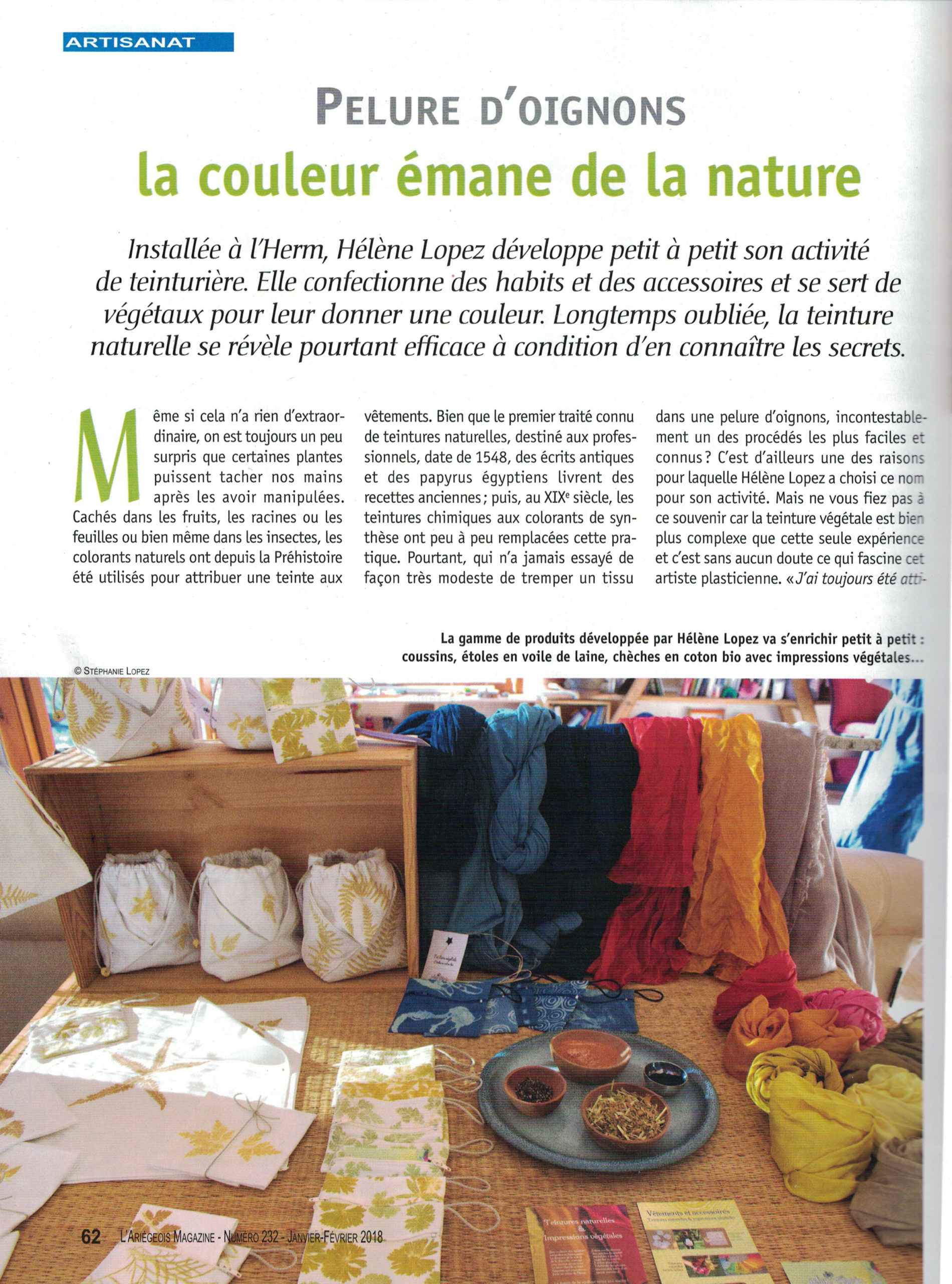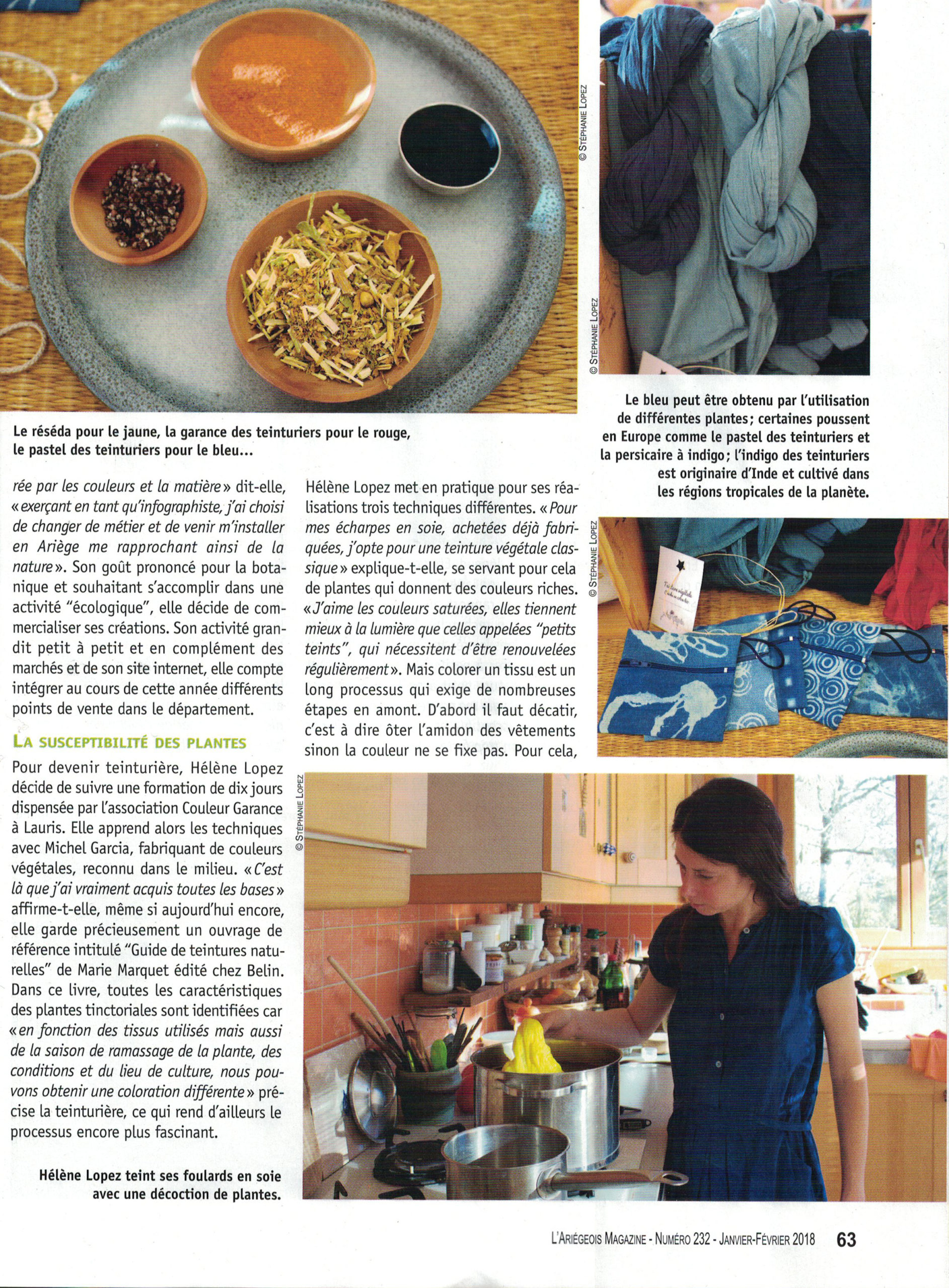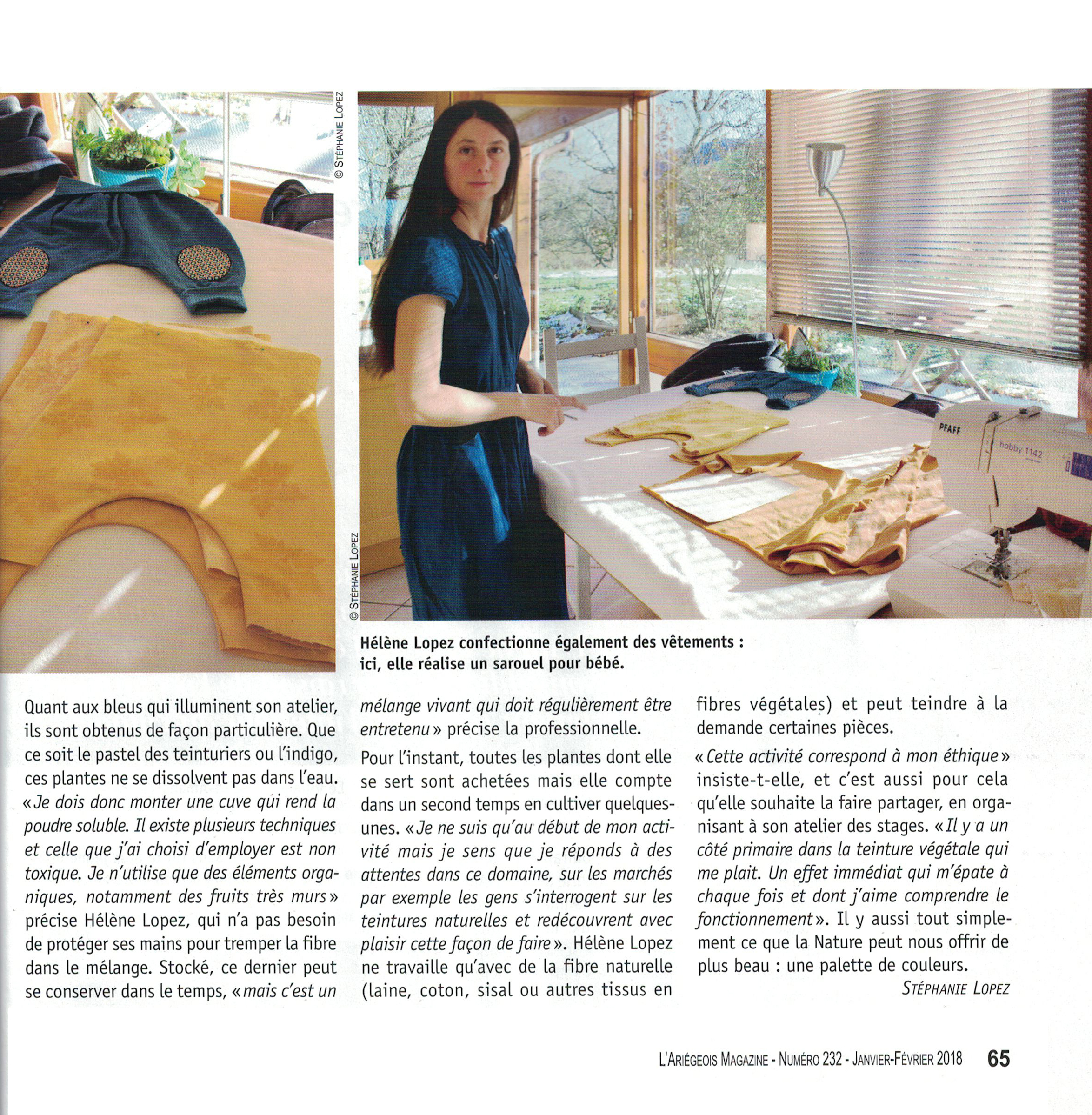 Presse | L’Ariégeois Magazine L’Ariégeois Magazine | Janvier-Février 2018 Artisanat. La couleur émane de la nature. Par Stéphanie Lopez.